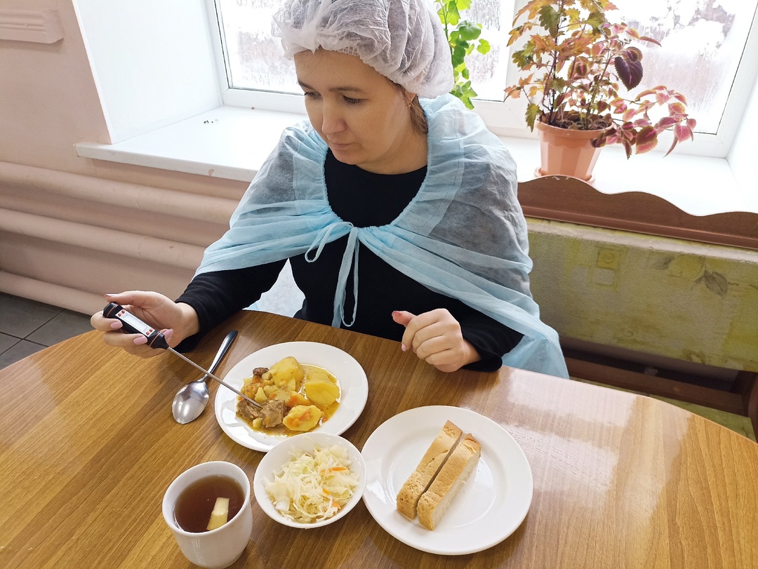 Сегодня был осуществлён родительский контроль за качеством горячего питания в школьной столовой. Родитель обучающегося в 8 классе отметила, что блюдо соответствует меню, горячее и вкусное!