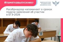 Рособрнадзор напоминает: заявление об участии в ЕГЭ-2026 нужно подать до 1 февраля. Поскольку 1 февраля – воскресенье, срок подачи заявления продлевается до 2 февраля включительно.