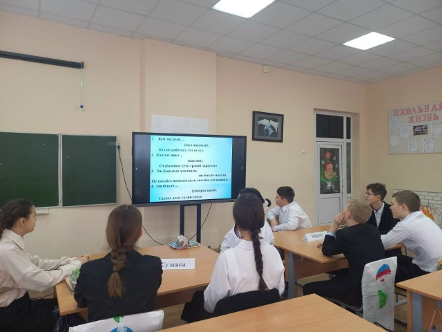 В рамках недели родных языков в 5-х классах прошёл урок на тему "Велика мудрость народа". Этот урок - игра не только проверяет полученные на предыдущих уроках знания, но и расширяет кругозор пятиклассников. Также этот урок помогает привить интерес к устному народному творчеству, так как в фольклоре воплощены воззрения, идеалы и стремления народа, его поэтическая фантазия, богатейший мир мыслей, чувств, переживаний, мечты о справедливости и счастье. На уроке шла упорная борьба за 1 место между командами.