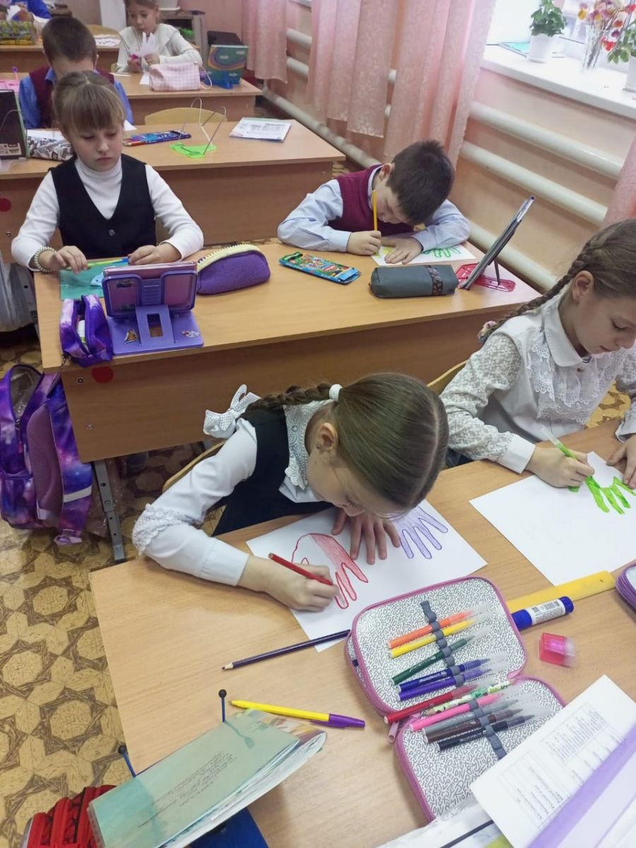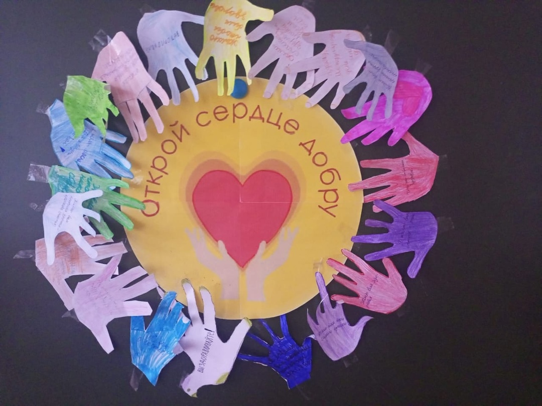 После написания пожеланий все ладошки были наклеены на большой плакат, который станет символом единства и поддержки.