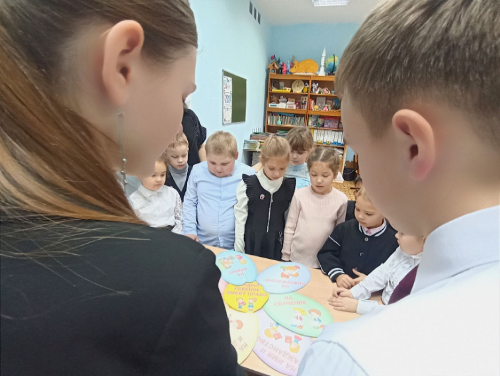 На мероприятии обучающиеся психолого-педагогического класса провели интересное и познавательное мероприятие. В начале встречи ребята рассказали первоклассникам о правах ребёнка, подчеркнув важность каждого из них. Дети узнали о том, что все они имеют право на образование, защиту, свободу выражения мнений и множество других важных аспектов своей жизни. После обсуждения прав детей участники мероприятия поиграли в психологическую игру, которая не только развлекла, но и обучила. Игра помогла детям лучше понять свои эмоции и чувства, а также научила их работать в команде и поддерживать друг друга.Мероприятие прошло в дружелюбной и позитивной атмосфере. Такие мероприятия способствуют формированию уважения к правам каждого ребёнка и их ценности в нашем обществе.