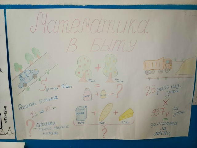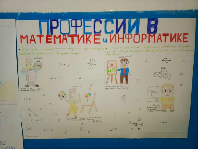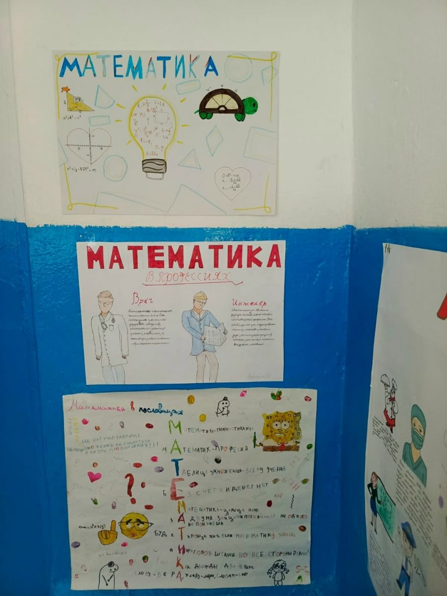 В рамках предметной недели математики, физики и информатики прошёл конкурс стенгазет. В этом году участникам было предложено раскрыть две актуальные темы: "Математика в профессии" и "Математика в быту".