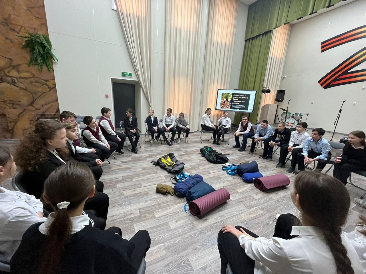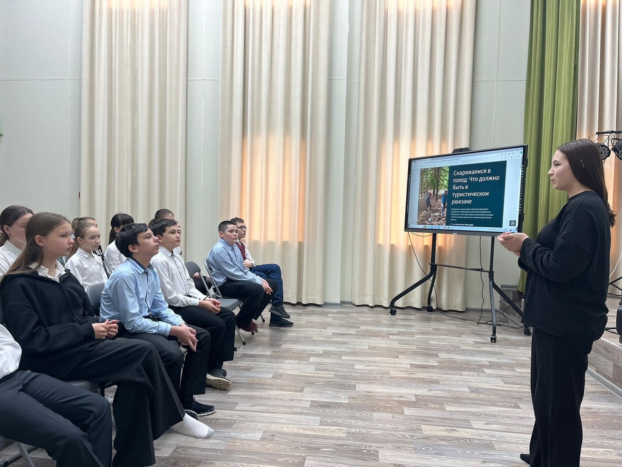 "Юнармеец" ПК активисты, ә хәзер Пгуфксит - Идел буе дәүләт физик культура спорт һәм туризм университеты РиСОТ әзерләү( рекреация һәм спорт-сәламәтләндерү туризмы) студенты Анастасия Мальцева Биләр мәктәбе укучылары белән дәрес үткәрде, анда ул туристик җиһазларның үзенчәлекләре турында сөйләде һәм поход рюкзагын ничек дөрес җыярга икәнен күрсәтте.#яшүсмерләр клуббилярск