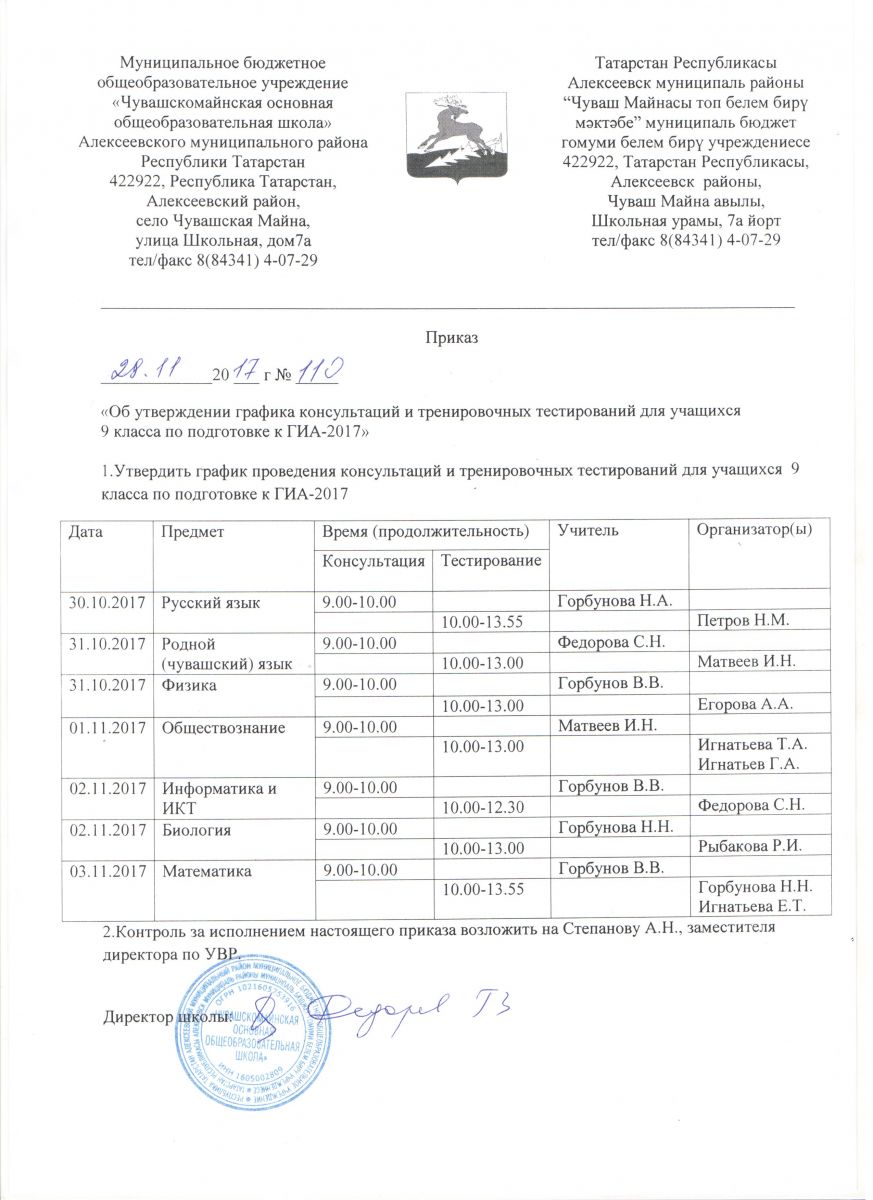 График консультаций и тренировочных тестирований 29.10.2017