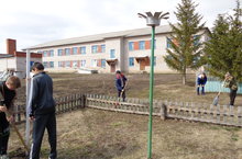 Всей школой организовали субботник по уборке школьной территории, спортивной площадки.