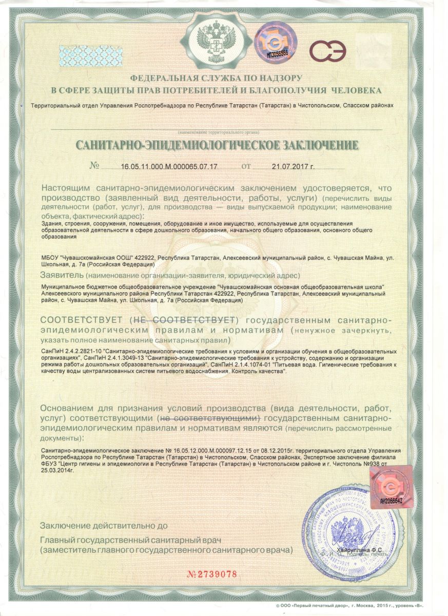 Санитарно-эпидемиологическое заключение/ Санитар-эпидемиологик нәтиҗә