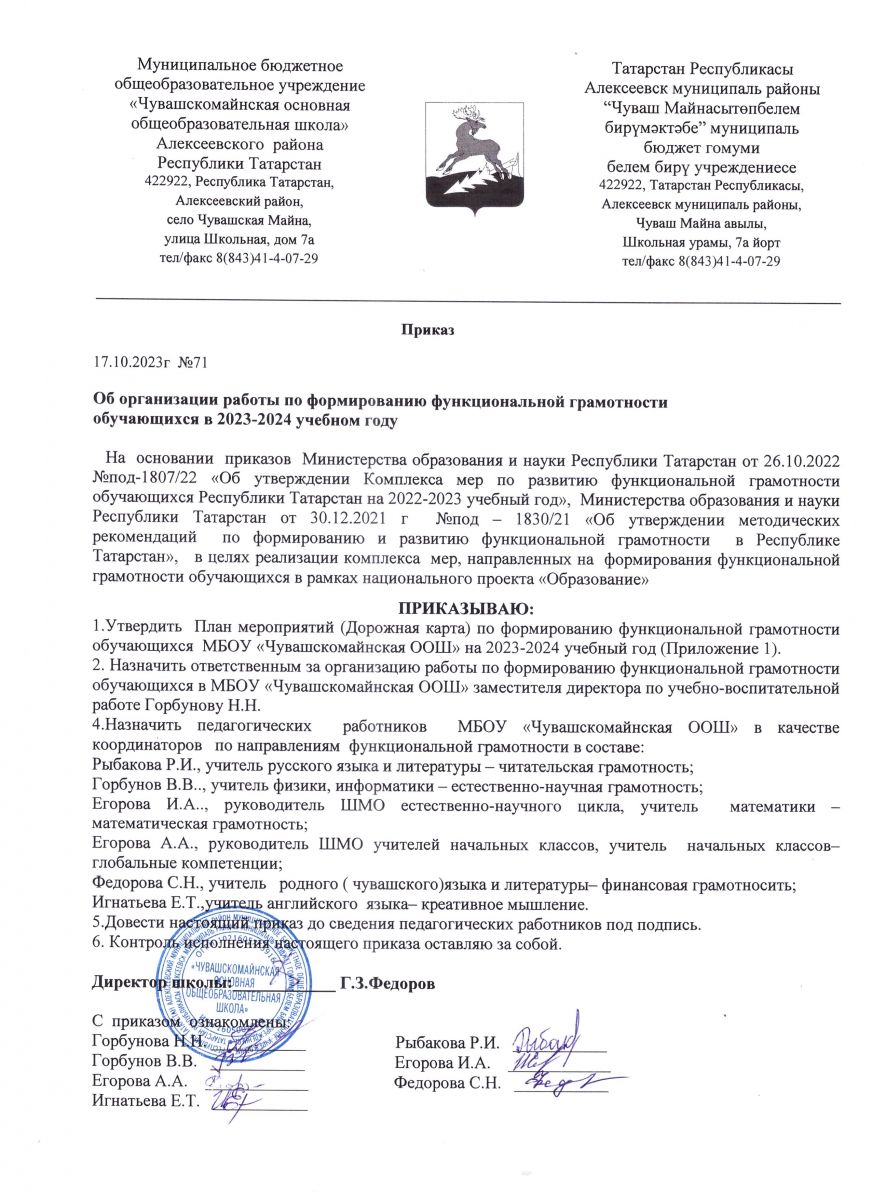 ►Приказ №70 о/д от 10.02.2023 "О реализации решения районного методического совета по вопросам формирования и развития функциональной грамотности";
