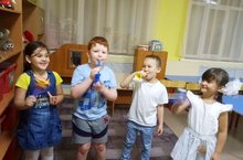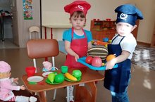 В роли поварят Арина, Рамзан, Азалия и Эльбрус. Воспитатель, Козлова С.В.