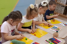На занятиии по лепке дети учились раскатывать из платилина валик прямыми движениями руки.