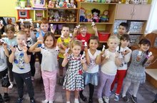 Дети подготовительной к школе группы сделали своими руками подарки своим бабушкам и дедушкам и поздравили их.