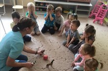 В ходе занятия дети учились раскатывать валик (колбаску) из платилина. Развивали мелькую моторику.