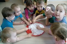 Светлана Васильевна продолжала учить детей правильно держать палочку, ритмично наносить мазки, различать и называть цвета. Учила нетрадиционному рисованию палочками методом тычка. Развивала у детей интерес к образцу зимы, эстетическое восприятие.
