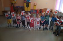 Петрушка пришёл к ним в гости, и не пустой, а с большим конвертом, в котором находились «картинки» с изображением геометрических фигур (треугольник, круг, овал, прямоугольник). Дети помогли Петрушке разобраться и назвать каждую геометрическую фигуру, а затем с помощью этих геометрических фигур украсить одежду Петрушки (заплатки), поскольку сам Петрушка всегда нарядный, яркий и красивый, и он попросил ребят тоже на своих листочках с изображением Петрушки украсить его одежду. Малыши справились с заданием, у всех получились красивые и нарядные Петрушки.