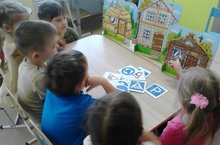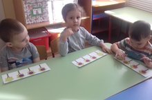 На занятии по ФЭМП дети младшей группы (воспитатель Комлева О.А) упражнялись в сравнении двух групп предметов способом наложения