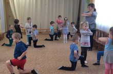 На музыкальных занятиях дети подготовительной группы готовятся к предстоящим праздникам 23 февраля и 8 марта. Идет разучивание танца "Ромашка".