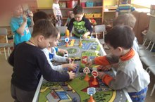 Воспитатель старшей группы Козлова С.В. предлагает детям при игре "в машинки" использовать макет дороги. Его применение полезно и в самостоятельной деятельности детей, и в сюжетно-ролевых играх, где дети моделируют ситуацию на дороге. В игровой форме дети изучают все опасные участки дороги, находят безопасные маршруты до детского сада. Макет можно использовать для развития мелкой моторики, зрительного восприятия, социально-бытовой ориентировки, ориентировки в пространстве.