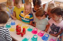 В младшей группе на заниятии по рисованию воспитатель Сарбаева С.Н поставила цель научить детей быть наблюдательными, внимательными. Определить размер, цвет, форму игрушки. Желание работать с гуашью, кистью, размывать краску.