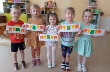 Аппликация в младшей группе Б. "Флажки такие разные." 04.05.2022
