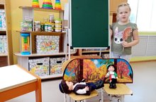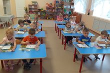 На занятии по развитию речи дети старшей татарской группы учились пересказывать басню Л.Толстого "Два товарища", узнали суть пословицы: "Друг познаётся в беде"