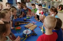 Сегодня дети средней группы рассматривали музыкальные инструменты, вспомнили их название., посушили как звучит каждый инструмент и поиграли на инструментах.