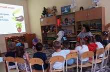 На занятии воспитатель закрепила знания детей о фруктах и овощах: где растут, какой формы и вкуса. Так же дети поиграли в интерактивную игру "Собери в корзину", дидактическую игру "Четвертый лишний", послушали и подпевали песню "Урожай у нас не плох".