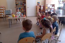 Воспитатель 2 группы раннего возраста, Комлева О.А. на занятии учила детей закрашивать контур рисунка аккуратно, не выходя за линию. Так же дети повторили знание круглой формы, помогли Тане нарисовать мяч.