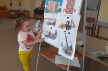 Занятие прошло с целью знакомства детей с профессией строитель, развивития речи детей. Педагог обучала малышей конструированию дома для зайчика.