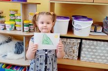 ПЕдагог обучала детей самостоятельно выбирать тему своего рисунка. Формировала навык доводить начатое дело до конца. В конце занятия каждый ребёнок представлял свой рисунок коротким рассказом.