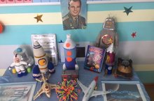 Ежегодно в детском саду устраивается выставка поделок приуроченная ко Дню космонавтики. Вот такая выставка получилась в подготовительной к школе группе. На выставке представлены совместно-выполненные детьми и родителями работы.