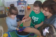 Дети четвертого года жизни,очень любознательные, задают много вопросов, поэтому, ребята вместе со своим педагогом, Поповниной Е.П., узнают много интересного о свойствах различных материалов. В этот раз они познакомились со свойствами песка, и вместе сделали вывод, что лепить из мокрого песка легко, а сухой песок рассыпается.