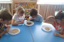 Рисование ватными палочками, ребятам второй группы раннего возраста очень понравилось. С помощью воспитателя Секачкиной О.С., дети тонировали яркое солнышко. Малышам было очень интересно наблюдать за волшебной палочкой. Они с удовольствием выполнили свои работы.