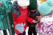 Дети второй группы раннего возраста, слепили снежные комочки для снеговиков.