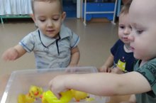 Дети первой группы раннего возраста знакомились с домашней птицей "Уточки" .Воспитатель Федорова О.А.