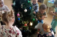 Дети второй группы раннего возраста украшали елку разноцветными шарами. Воспитатель: Андрякова Н.А.