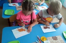 В детском саду началось веселое лето. Но педагоги не прекращают заниматься с ребятами творческой деятельностью. Педагог старшей группы, Миндубаева А.М., в рамках тематического "Веселые ладошки", изобразили с ребятами картины из ладошек.