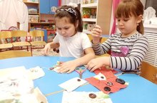 Уже давно доказано, что развитие руки находится в тесной связи с развитием речи и мышлением ребенка. Уровень развития мелкой моторики - один из показателей интеллектуальной готовности к школьному обучению. Поэтому для развития мелкой моторики, педагог подготовительной к школе группы, Кочева И.А., обучает ребят навыкам работы с тканью, нитками и иголкой. Они учатся пришивать пуговицы. Работа эта оказалась не такой уж простой, не у всех получалось сразу вдеть нитку в иголку и завязать узелок. Но все-таки результат был достигнут.