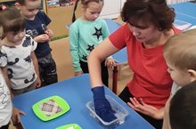 Дети дошкольного возраста любят экспериментировать и исследовать. На занятии ребята с помощью экспериментирования выявляли свойства резины. Задачи занятия: научить вычленять общие признаки резины на основе структуры поверхности, прочности, эластичности, проводимости воды; учить устанавливать связь между материалом, из которого сделан предмет, и способом его использования; развивать навыки проведения лабораторных работ.В начале занятия, которое провела с ребятами средней группы, Поповнина Е.П., к ребятам пришел в гости воздушный шарик и попросил ребят рассказать о нём. Чтобы что-то узнать ребята превратились в исследователей и проделали несколько опытов. Из первого опыта дети выяснили, что шарики мягкие, гладкие эластичные. Следующим опытом ребята установили, что резина водонепроницаемая. В конце занятия были подведены итоги и за хорошую работу ребята все получили подарки - воздушные шарики.. -