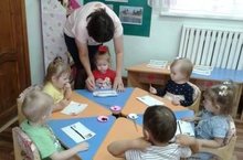 Воспитанники второй группы раннего возраста выполняли элементарные действия по инструкции воспитателя при обыгривание сказки с помощью настольного театра.