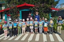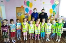 Плотникова Т.В повторила с детьми правила поведения на пешеходном переходе. За участие в акции дети получили подарки.