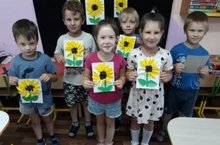 Дети старшей группы под руководством воспитателя Сарапкиной И.Н. выполнили аппликацию " Подсолнух".