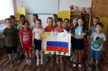 Воспитатель старшей группы Сарапкина И.Н. в предверии праздника Дня России провела беседу. Ребята просмотрели презентацию, сделали коллективную работу, нарисовав флаг России нетрадиционным способом.