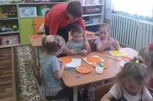 Раз, два, три, четыре, пять -Будем с мячиком играть.Этот мяч большой и красный,Этот мяч такой прекрасный.Будем мы его катать,Упражнения выполнять.Педагог Синякова Е.Е. в ходе ООД по аппликации развивала у детей чувство цвета, учила самостоятельно украшать силуэт мяча, умение выбирать элементы узора. Воспитывала потребность вести здоровый образ жизни. -