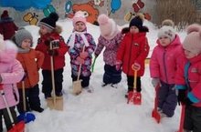 Дети средней группы №2 с воспитателем Вафиной Н. А. расчищали дорожки от снега на своём участке.