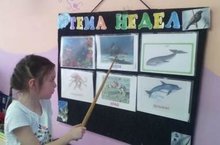 На тематической неделе " Планета Земля" дети подготовительной группы, на занятию по развитию речи знакомились с водными обитателями. Дети закрепили названия рыб, особенности их проживания, питания, строения, дыхания. Обучались составлять предложения по опорным словам, учились образовывать прилагательные, активизировать словарный запас. Педагог воспитывала в детях бережное отношение к природе, к окружающей среде.