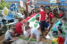 Дети средней группы "Солнечные зайчики" начали изучать азы дорожных наук. Познакомились с некоторыми дорожными знаками, с понятием улица. У детей воспитывается желание соблюдать правила дорожного движения.