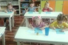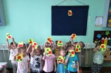 Совместно с педагогом младшей группы №2 Вафиной Н.А. ребта учились клеить готовые формы в определенных частях основы - листа, согласно образцу, закрепляли знания округлых форм.