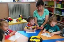 В рамках тематической недели "Мир профессий" воспитатель второй группы раннего возраста №2 "Лучики" Подгорная И.Г. провела НОД по лепке "Руль для шофера", где учила малыше раскатывать палочку цилиндрической формы, делать из нее кольцо, соединяя концы.