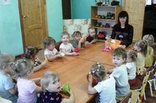 Воспитанники второй группы раннего возраста №1 рассматривали содержимое корзины Маши. Педагог Тазеева Л.А. побуждала детей к запоминанию и воспроизведению названия овощей.