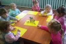 Малыши группы "Звездочки" учатся лепить округлый предмет и придавать ему форму репки, тем самым развивая мелкую моторику рук.