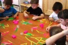 В рамках тематической недели "Космос" воспитанники старшей группы учились составлять задуманный предмет на плоскости - метод барельеф из семи разноцветных согнутых в жгут столбиков.Ребята учились дополнять свою работу композиционными решениями.